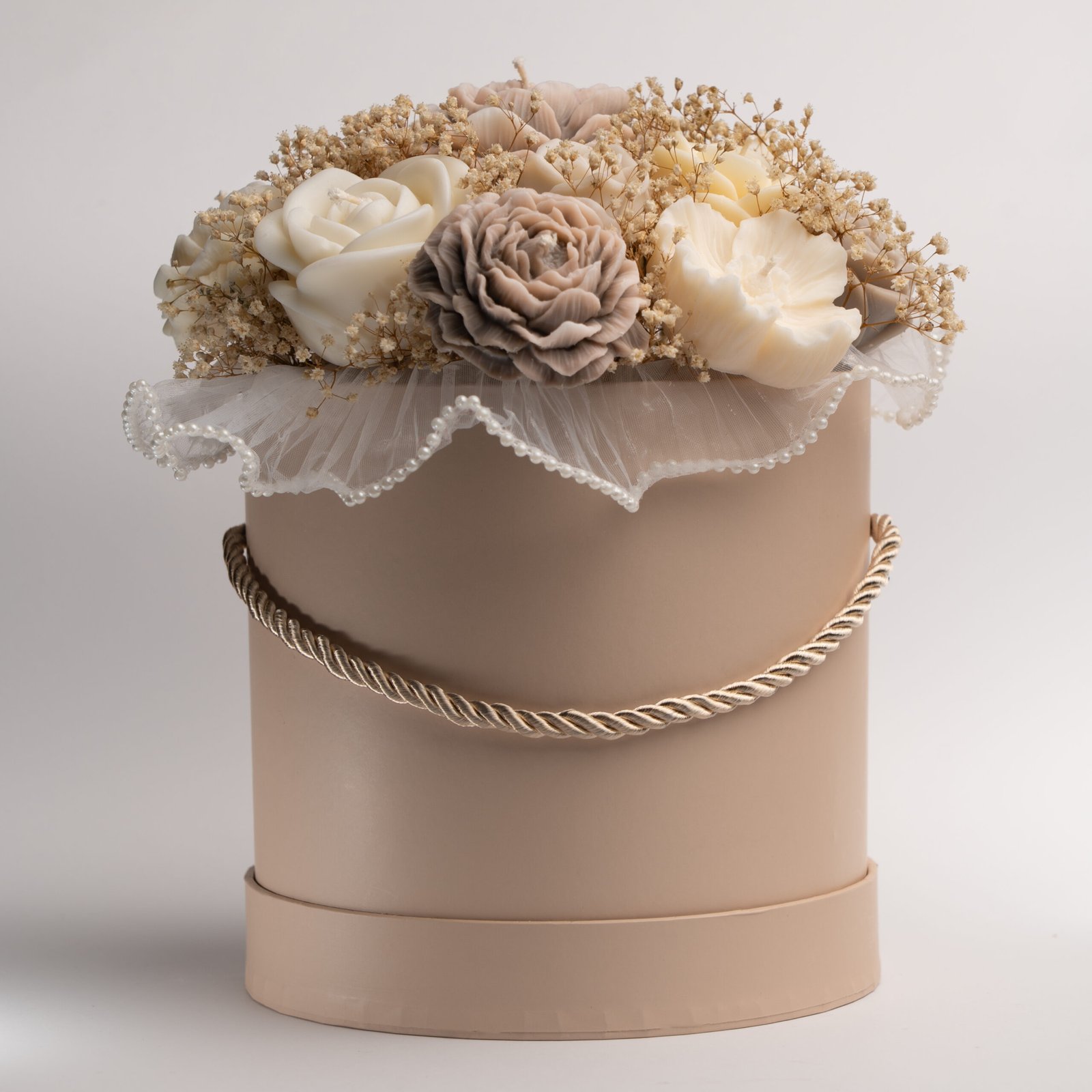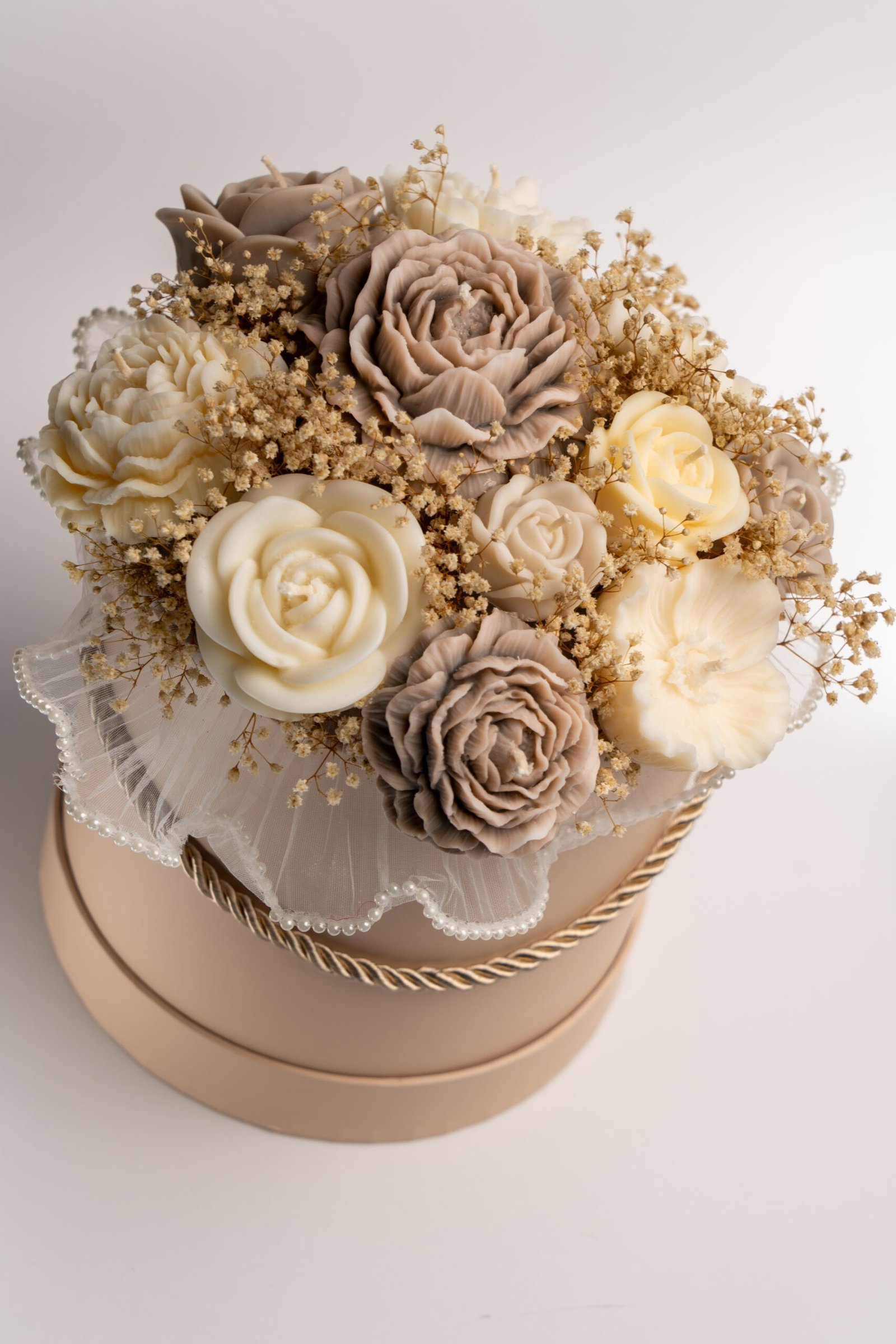 Candle Flower Box to wyjątkowa kompozycja kwiatowa stworzona z ręcznie wykonanych elementów z naturalnego wosku sojowego. Każdy kwiat powstaje osobno, z dbałością o detale, dzięki czemu całość wygląda jak elegancki bukiet, który jednocześnie jest dekoracją i produktem zapachowym.