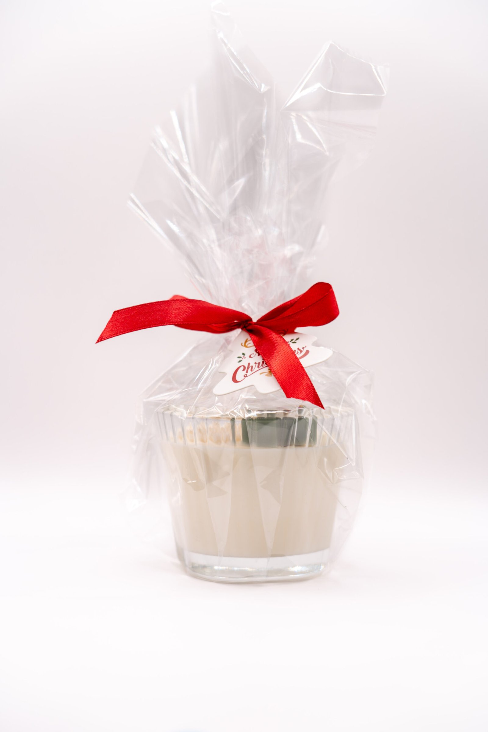 Twoją świeczkę starannie owijamy w przezroczysty celofan i przewiązujemy ozdobną wstążką.